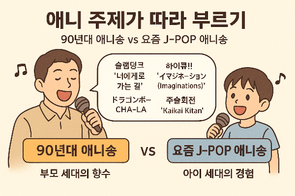 이렇게 보면 부모 세대와 아이 세대가 즐기는 애니송은 꽤 다르지만, 함께 부르는 순간 세대 차이가 대화와 공감으로 바뀝니다. 부모는 아이가 좋아하는 최신 애니송을 배우며 "요즘 애들은 이런 노래를 좋아하는구나" 하고 새로운 문화를 경험합니다.